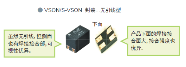 l VSON/S-VSON封裝,雖然無直接引線,但是繼電器側身焊接結合處面積大,結合強度優(yōu)異。